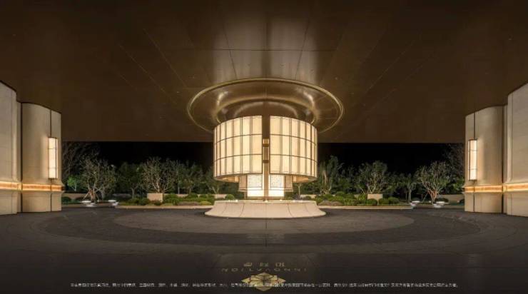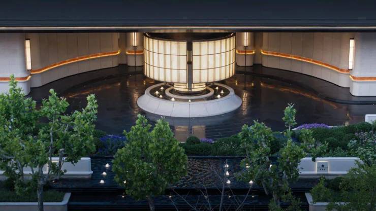 双轴线的设计,充分 拓宽了视野面与观赏点位,环形回廊、精神游廊与下沉庭院通过立体景观平台相融,又创造出隔岸听泉的诗意场景。
