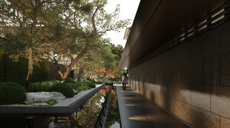 它超越了简单的功能性动线,升维为五种全然不同的心境体验:从充满仪式感的“五进礼仪动线”,到漫步立体园林的“沉浸游园动线”;从合院区幽静私密的 “坊巷归园动线” ,到穿越商业街区的“格调品赏动线”,乃至沿着二灶江水岸徐徐展开的“滨河漫游动线” 。