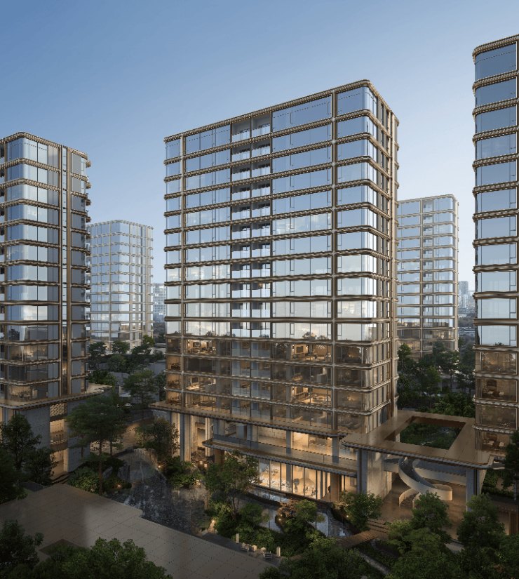 建筑由GOA大象设计合伙人陈健执笔,以国际视野勾勒天际线;景观由承迹景观合伙人及莉操刀,意在打造“漂浮的庭院”;室内则汇聚李益中、唐忠汉、林宏俊等多位名家,共同定制顶级的生活场景。