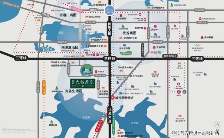 城投·光谷香恋,位于关山核心民族大道,与武汉枫叶国际学校、华师一附中等知名学府紧邻,南瞰汤逊湖,北望韵湖公园,是武汉城投20余年匠心积淀的全新力作。