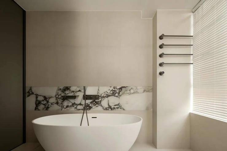 潮映望月府的精装也是 3000元/㎡装标里的“高配”,在产品“神仙打架”的当下,依旧十分出挑。全屋墙纸和客厅的岩板背景墙都是潮映望月府的交付标准,智能马桶也是标配,减少业主后期软装升级烦恼。