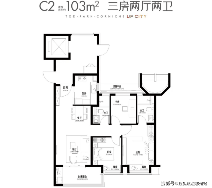 此外,项目还有建筑面积约93㎡3房1卫和约102、103㎡3房2卫