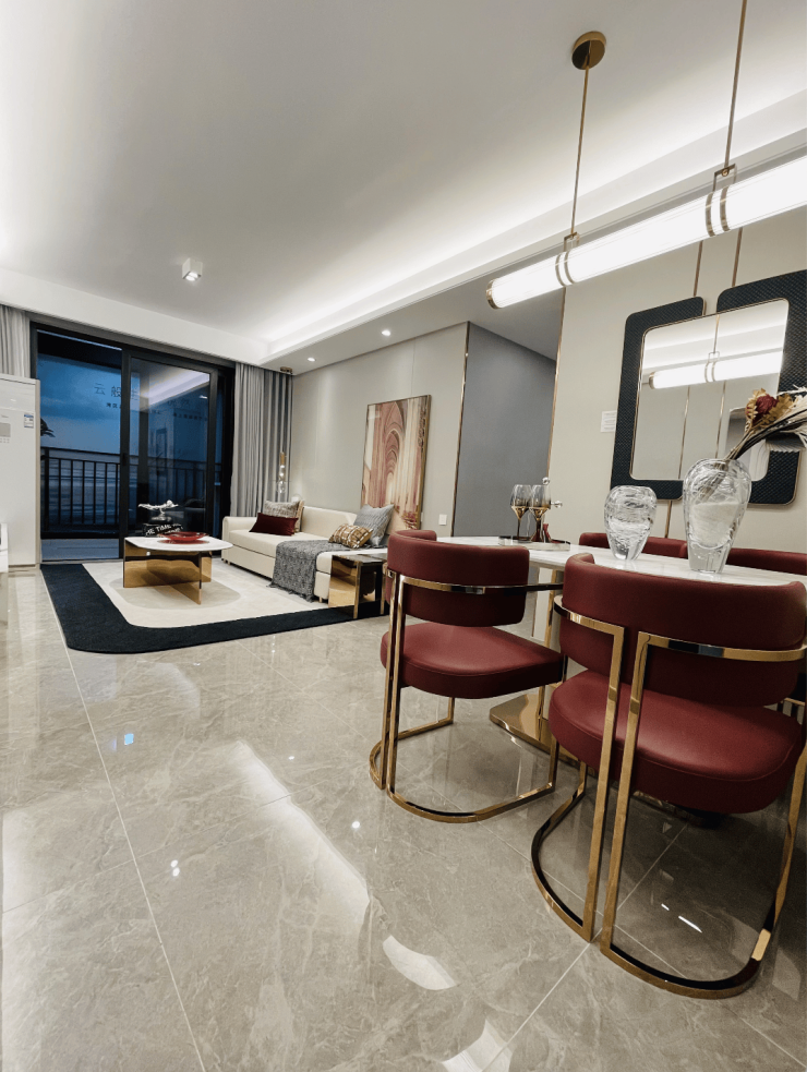 客餐厨一体化设计,外连景观阳台,保证室内充足的采光与通风,无隔断的设计,增加了空间使用率,也满足了家庭成员之间更多的互动与交流需求。