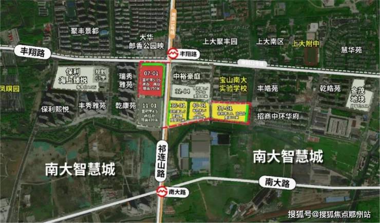 该地块位于北上海的南大智慧城,东至汇丰路,南至走马塘路,西至祁健路,北至丰翔路。