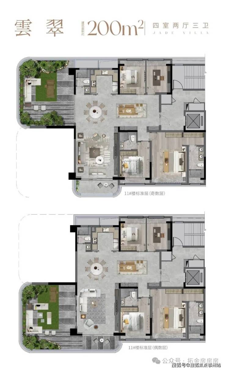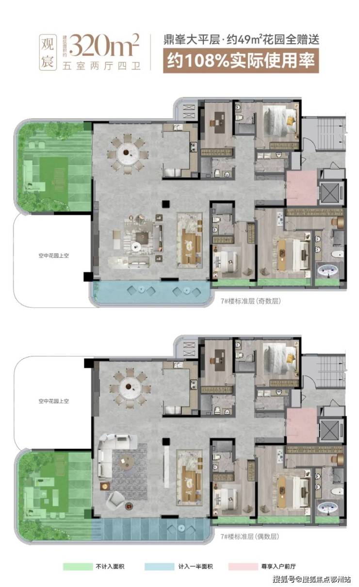 四室三卫+约48㎡空中花园,南向采光面达21米;