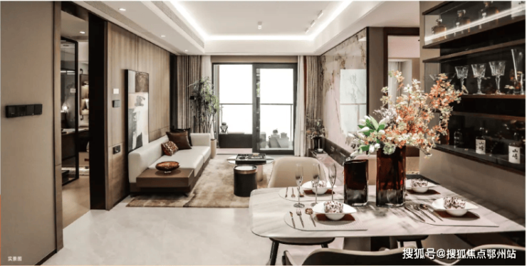 奢华颜值 —— 全屋优质墙布,搭配600*1200大面积地砖 ,将奢雅质感融入到方寸之中,细致打造美的惊艳; 创变乳胶漆+局部石膏板吊顶 天花板、定制 潘多拉艺术岩板 背景墙,充满张力的空间,与线条相映成辉。