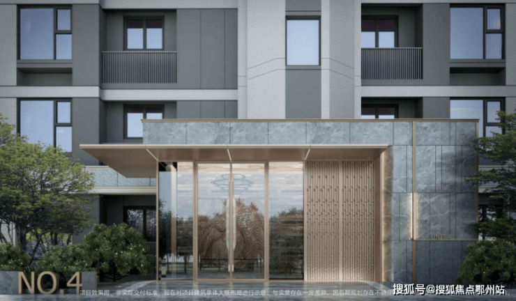 项目的建筑外立面采用现代简约的风格,搭配有序的横线线条, 以米白色为主并搭配一定香槟金暖色调,并利用大面积玻璃+部分房间近乎落地窗设计 ,通过分段式化解建筑尺度,丰富造型,整体时尚且更为耐看。