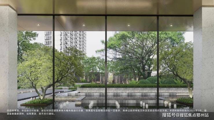 以 精工迎宾大门设计,通过门头、水岸、花园等的组合,打造十字主轴的归家仪仗, 形成极具品味的入户体验;并融入至臻工艺,从主入口、地库、公区打造专属的仪式感。