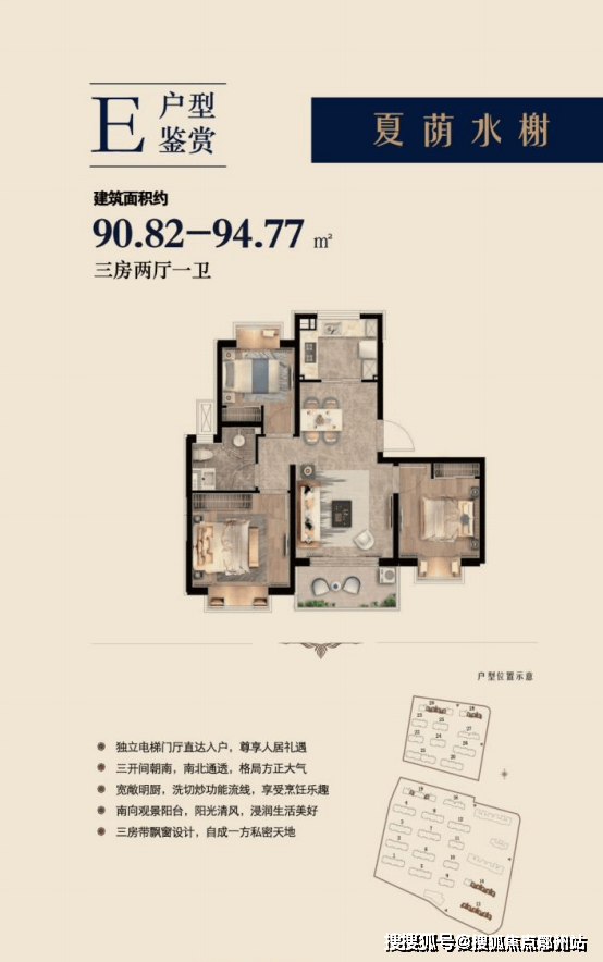 建面约90-94㎡3房2厅1卫▼