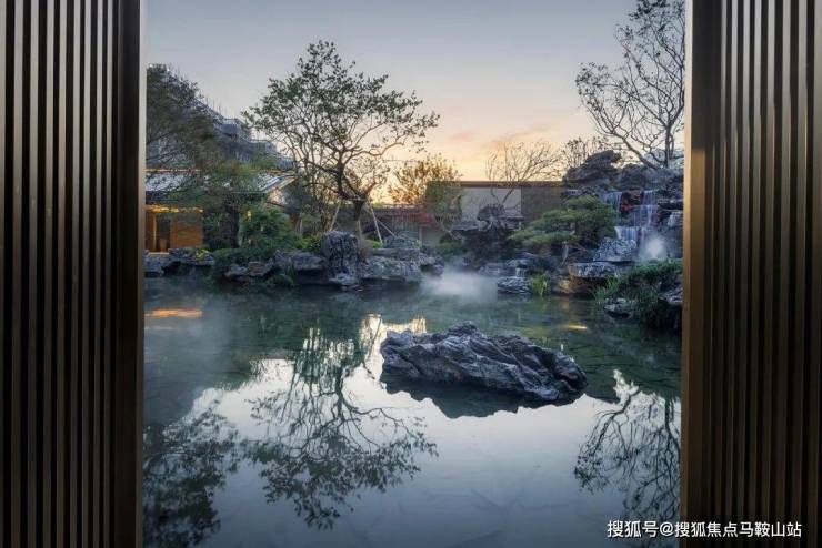 以水、山、石、植相结合打造而成,建筑与水池相互呼应,虚实相间,儒雅气质舒散开来,自然禅意之感油然而生。