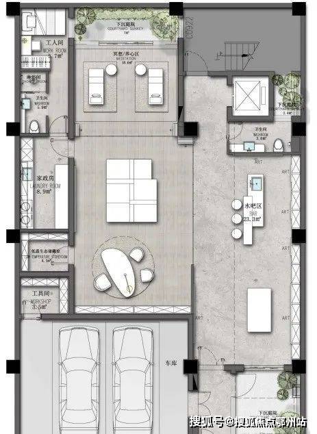 合院的景观灵感来自《庄子·知北游》:“天地有大美而不言,四时有明法而不议,万物有成理而不说。”