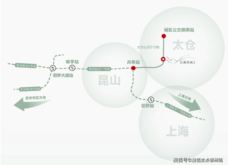 项目邻靠前进路、胜泾路、烟沪线(204国道),便捷接入两高(京沪/沈海高速),同频太仓“5+1”轨道交通网络(建设中),公交路线312路自江南禾风站,向西链接苏州轨交11号线,向东至科教新城客运站换乘60路,102路,112路,128路,以多维立体交通便捷出行长三角。(资料来源于太仓发布官微)