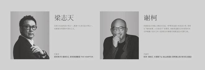 室内设计:大师精工——全球31位室内设计师之一,香港十大顶尖设计师之一,也被誉为中国现代简约之父;《梦想改造家》知名设计师,坚持以“做有诚意、人文的设计”的理念,将具有温暖与关怀的现代东方风格融入设计之中,也具有当代禅意空间建造设计巨擘之称。