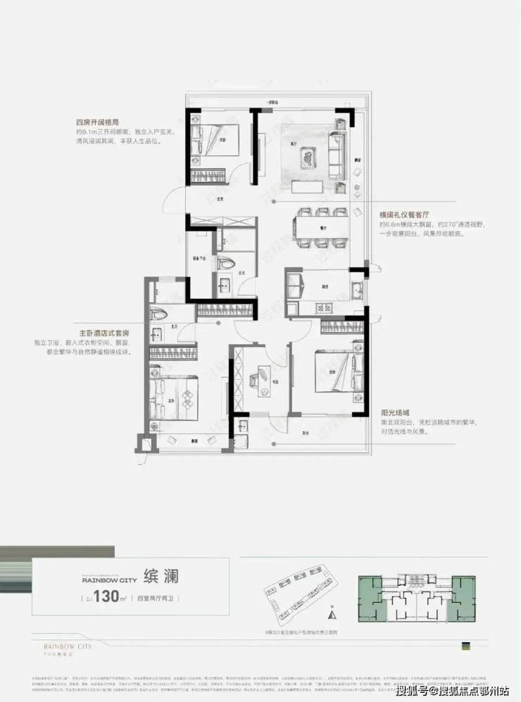 而建面约130㎡户型,在纯边套、约270°环景视野的基础上,餐客厅配以约6.6m横阔大飘窗、一步朗阔阳台,瞰景收心,释放恬淡自在的情绪。约9.1m三开间朝南,约5.6m双联阳台,无限扩展生活意境,园林芳华尽现眼前。一方阳台亦可作为私人天地,一台跑步机或瑜伽垫,即刻打造一个健身房;一副休闲桌椅,亦可感受生活的自如惬意