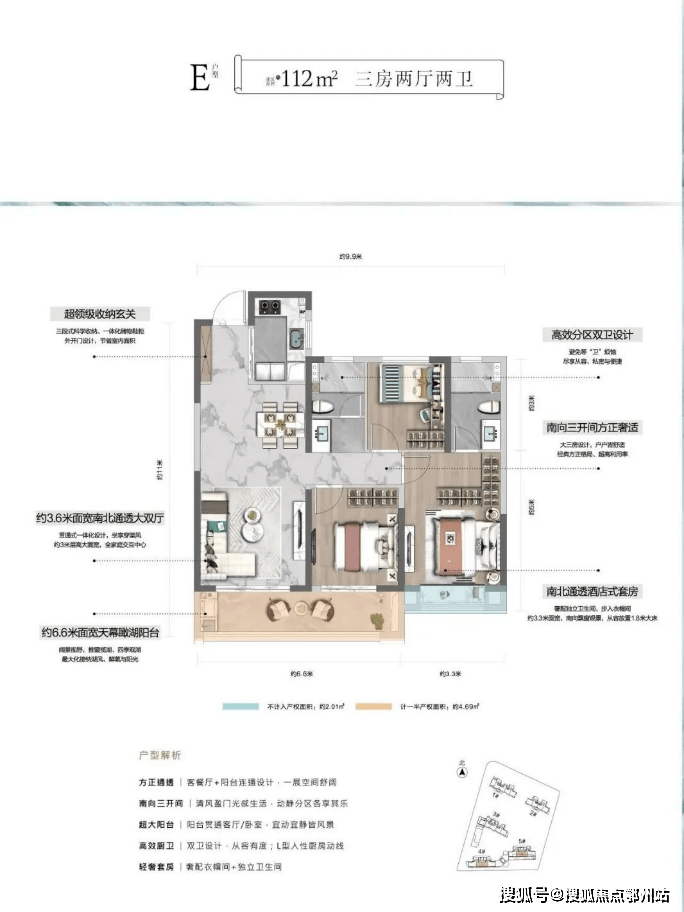 目前5号楼面积段112-140㎡, 其中104户型是二环沿线难得的小面积三房,也是半岛最后小户收官,相当于给你派发了一张晋升二环的入场券。再加上首开的性价优势,