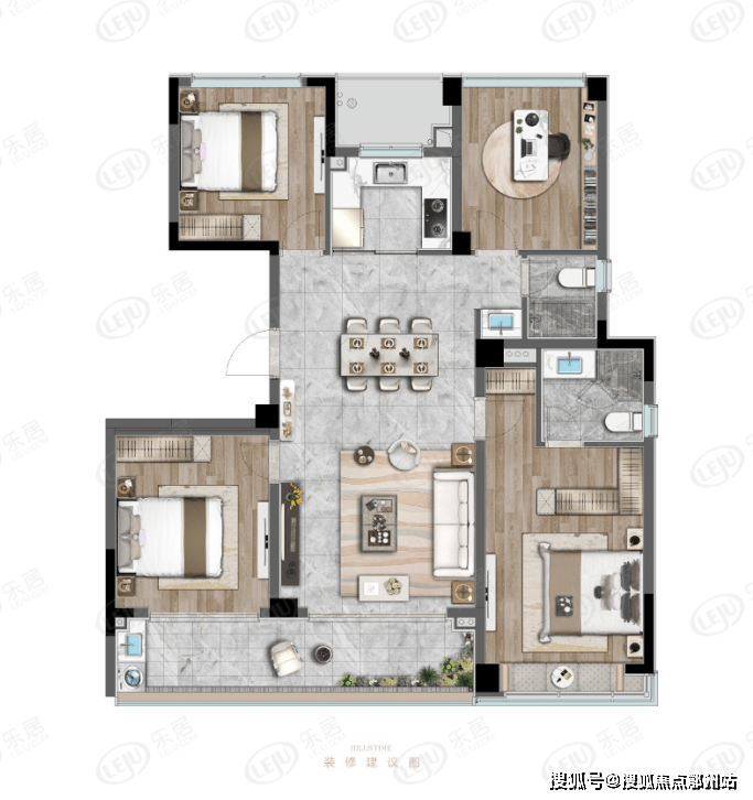 户型直接影响居住体验,较好的采光、通风、较短的归家活动动线,动静分区,都将提升居家生活体验。如下图B户型