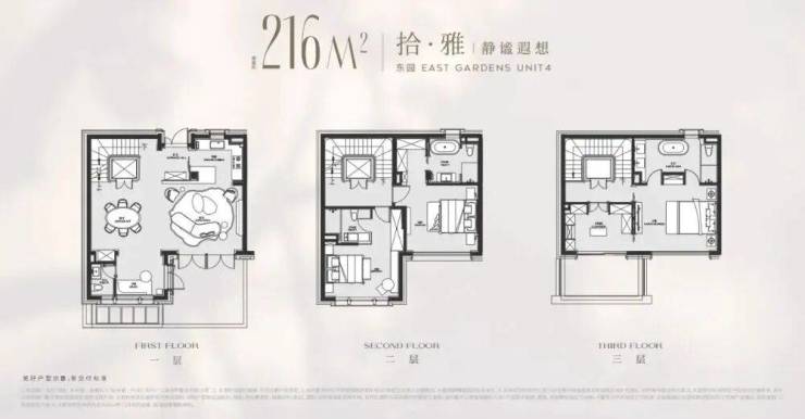 以建面 216平户型为例,地面总高3层,地下一层5.5米带夹层, 地下室面积就达到120m²,另外有露台、花园等,项目平均附赠也达到了约60%!