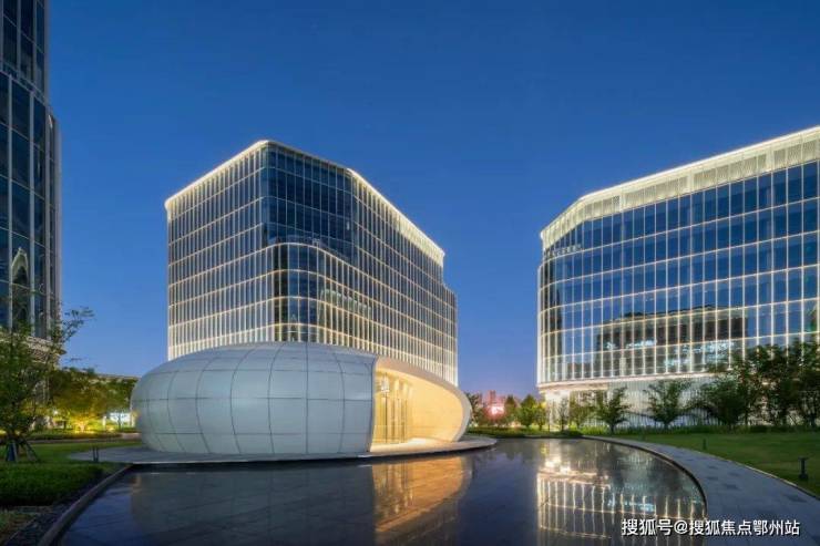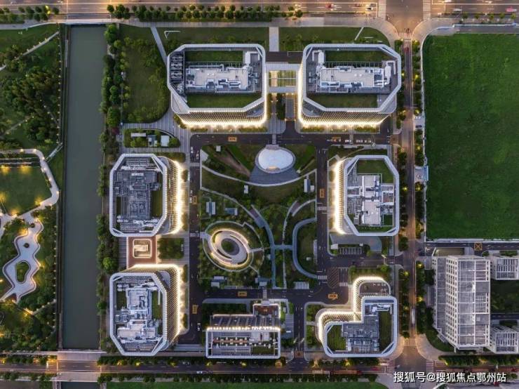 项目整体布局兼顾生态、视野与空间效率,办公与公寓楼采用南北朝向提升日照品质;滨水建筑则朝东西布局,充分利用河景资源。建筑设计采用高效核心筒方案,实现灵活布局与高效运营。