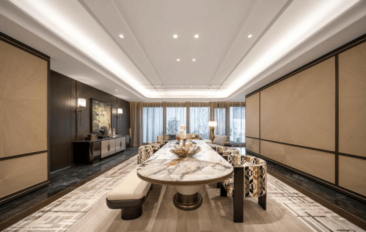 让人震撼的是123户型客餐厅,面宽约6.6米,在拓展两个阳台后,客餐厅面积可达约40㎡,和150-160㎡客餐厅尺度相当。