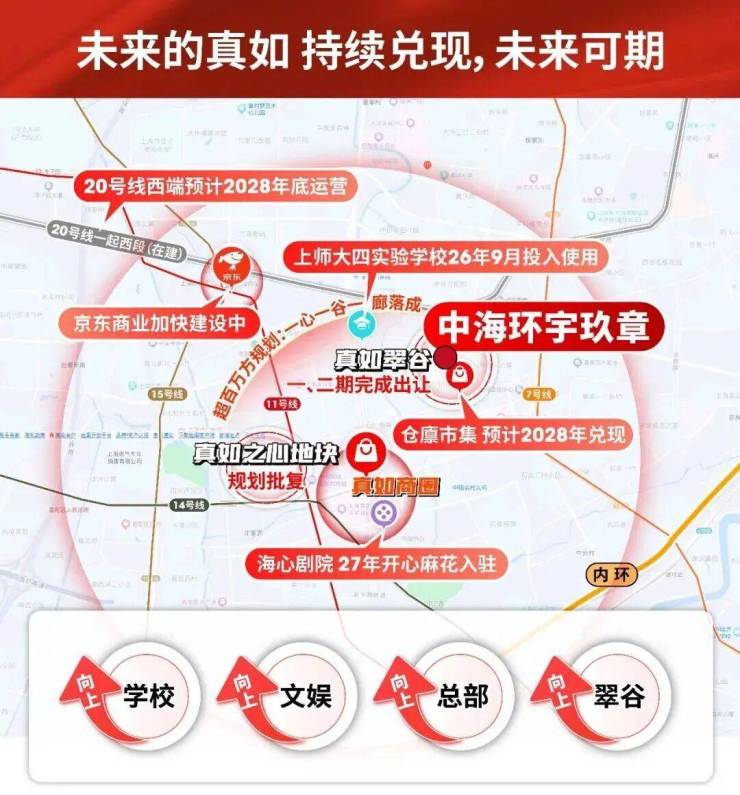 第四,真如继续集中兑现,利好肉眼可见 今年开始,真如一批重磅配套将陆续落地,居住价值持续升级: