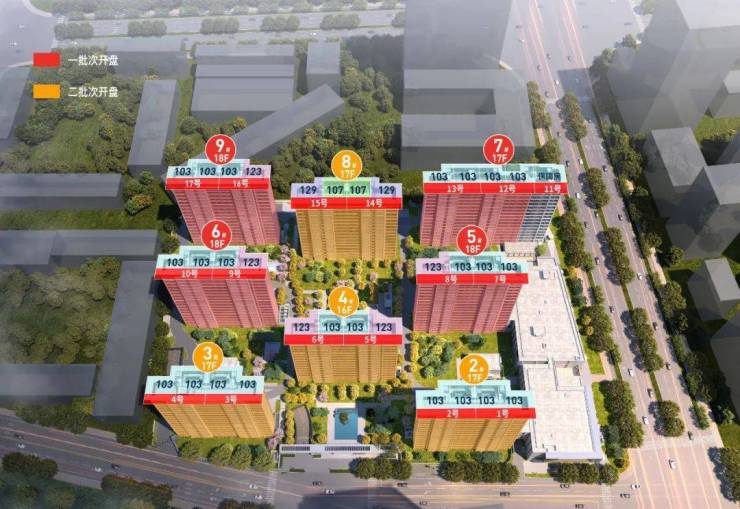 建筑规划:3层邻里中心1栋、16层住宅1栋、17层住宅4栋、18层住宅3栋。