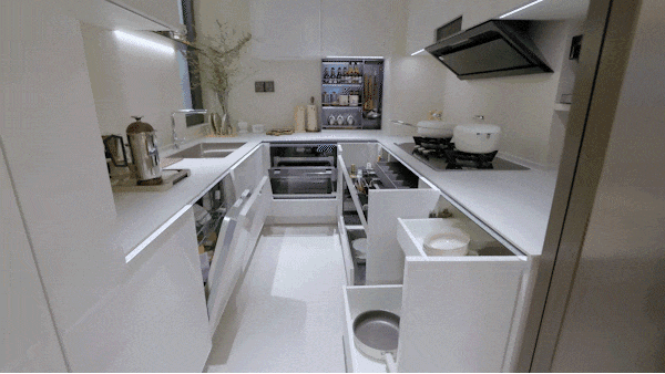 配合 抽拉置物架、地柜联动拉篮、天使下拉拉篮、三重骑马柜、随心抽、窄柜高深拉篮 的组合拳,每一种都像是为不同的物品量身定制。