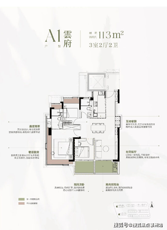 建面约113㎡3房 PrismVilla175-220㎡精装叠墅