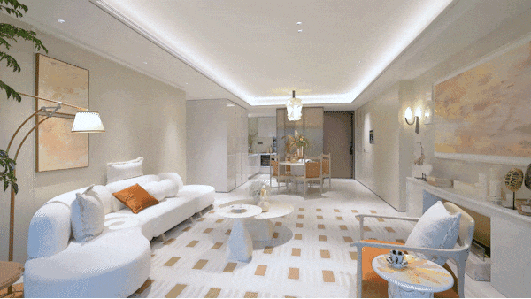 4层客餐厅通过L型露台连接,形成城市中难得的空中花园,特别是边套产品,顶楼露台面积可达约60㎡,无论是打造露天酒吧、儿童游乐区,还是布置观星露营场,皆不在话下。