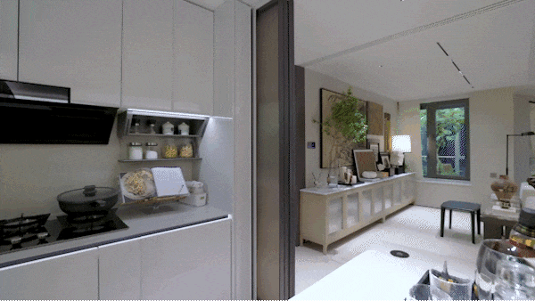 走进厨房, 四联动拉丝玻璃移门 正上演变形记,封闭模式隔绝油烟,半开放模式连通餐厅,全开模式则让烹饪成为社交秀场。