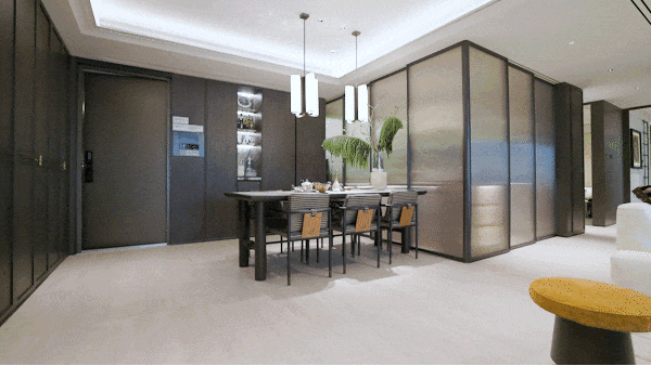 一进|隐园之境: 整个翡雲悦府拥有相当宽奢的入户门庭,昂贵的用料、精致的线条与柔和灯光,奢华而有腔调。
