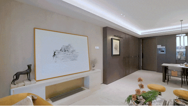 在翡云悦府,奢装是一场基因级审美的暴力输出。当视线掠过吊顶, 双层叠级的酒店式吊顶, 以极简笔触勾勒出悬浮于空中的云朵褶皱,在灯光下折射出丝绸般的细腻光泽,连光影都成了设计语言。