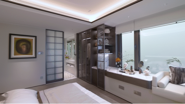 上叠主空间分布于3-4层,三卧室布局功能清晰,其中主卧更拥有270°全景落地窗 (北向次卧为270°全景飘窗) 视野,采光、视野极佳。