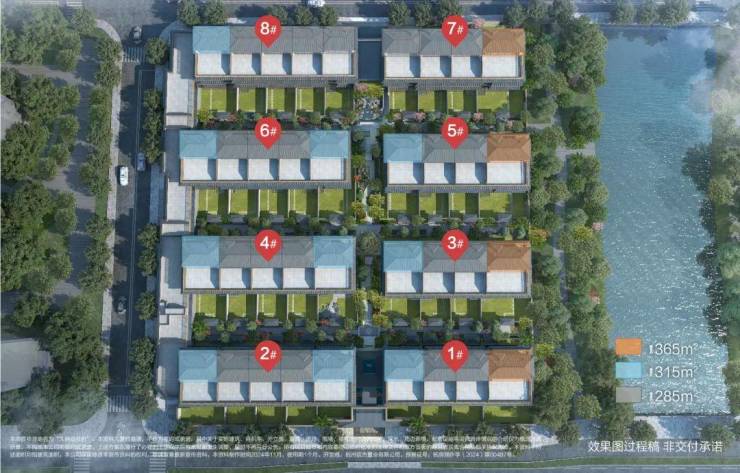 建筑规划:8幢排屋,户数36户,住宅70年,主力户型:建面约285-316-365㎡,