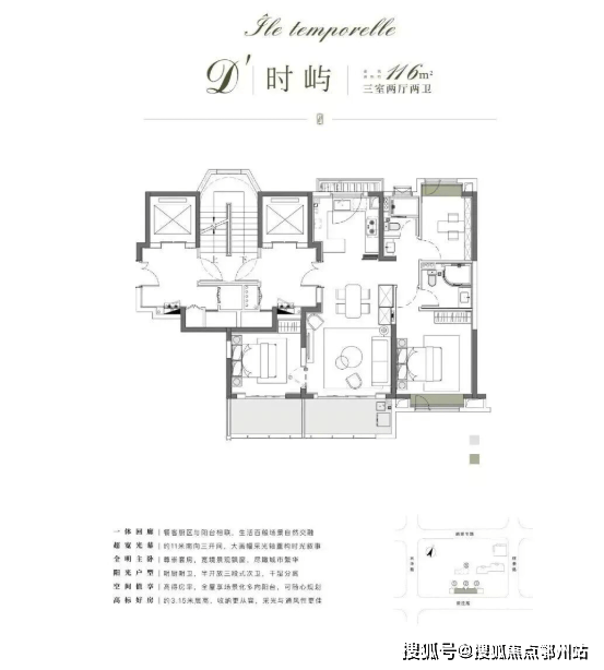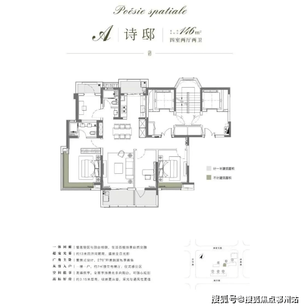 项目以116㎡户型为起步,纯粹改善型社区,所有户型都做到了约3.15米的层高,