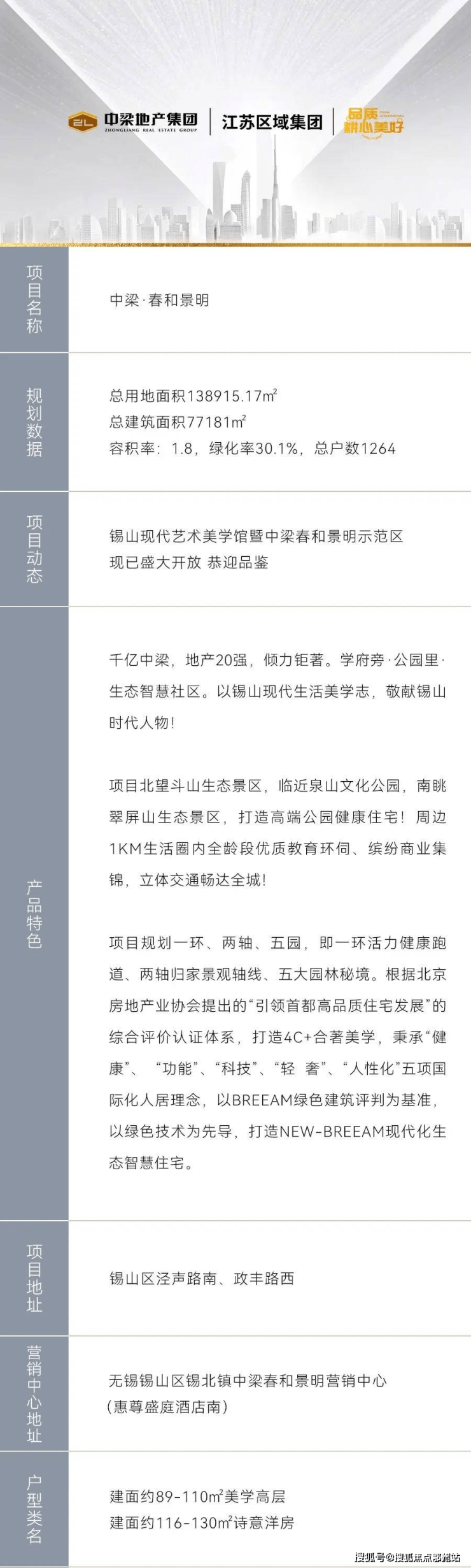 中梁·春和景明坐落于锡澄宜一体化经济带和新锡快速路焦点之位,以人文高地、咫尺繁华,界定锡北1公里高质生活圈。