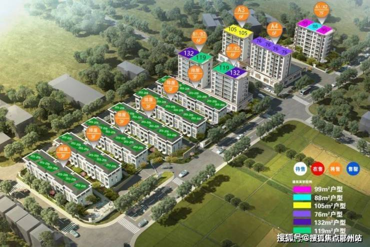 整个项目只打造了 建面约76-132㎡的6-7F真洋房 以及 建面约203-209㎡山水排屋 。