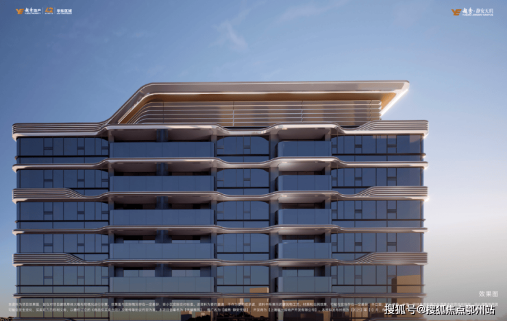 借鉴国际前沿豪宅营造风格,以极简线条与弧形几何元素作为设计主旨,搭配大块面的玻璃搭配香槟色/浅香槟色铝板形成的高级感,一体化的游艇曲线超流体立面,让色彩碰撞出超前美学。