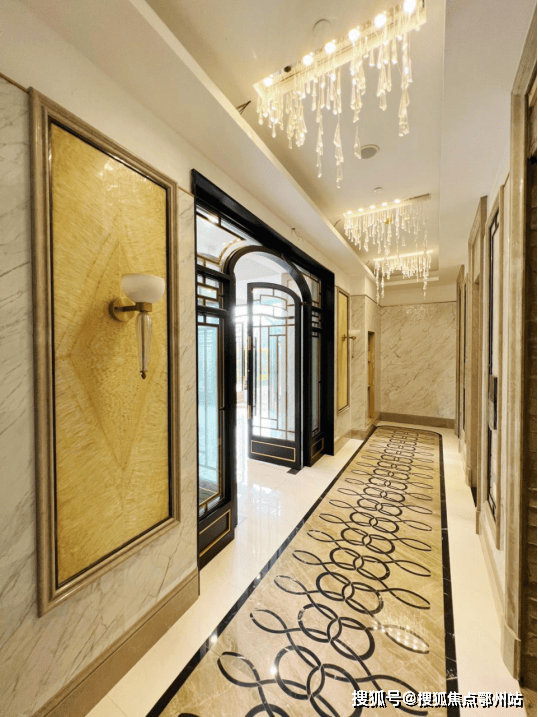 每栋楼也都是 地上地下双入户大堂的设计,一层入户大堂地面采用了曼陀罗拼花造型,而且都是纯手工切割技术打造的定制款,造价颇高。