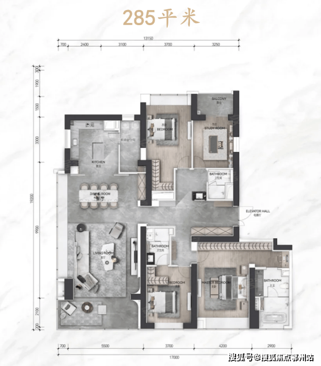 武汉瑞府占地面积约5.3万方,总建面约21.5万方,容积率4.0,共991户,住宅机动车停车位1859个,车位比约1:1.87,包含9栋住宅楼,约3205㎡商业,以及1所幼儿园。项目共三个地块,有空中连廊将其连在一起。