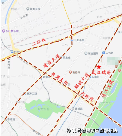 武汉瑞府位于解放大道与头道街交汇处,在楼市划分中属于二七滨江核心区,行政划分属于江岸区,环线位置在二环内,内环边。