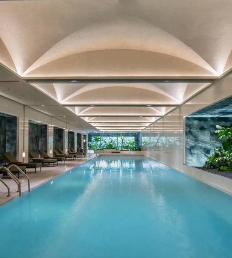 会所面积高达2000㎡左右,通过艺术巧思,设计建造了植物泳池,女性健身区等丰富场景。