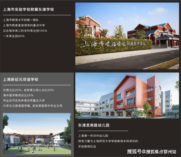 学校上,上海思南路幼儿园、上海实验学校附属东滩学校、上海外国语大学分校(贤达经济人文学院), 规划中分三期建设的上海交通大学也纷纷汇聚于此。