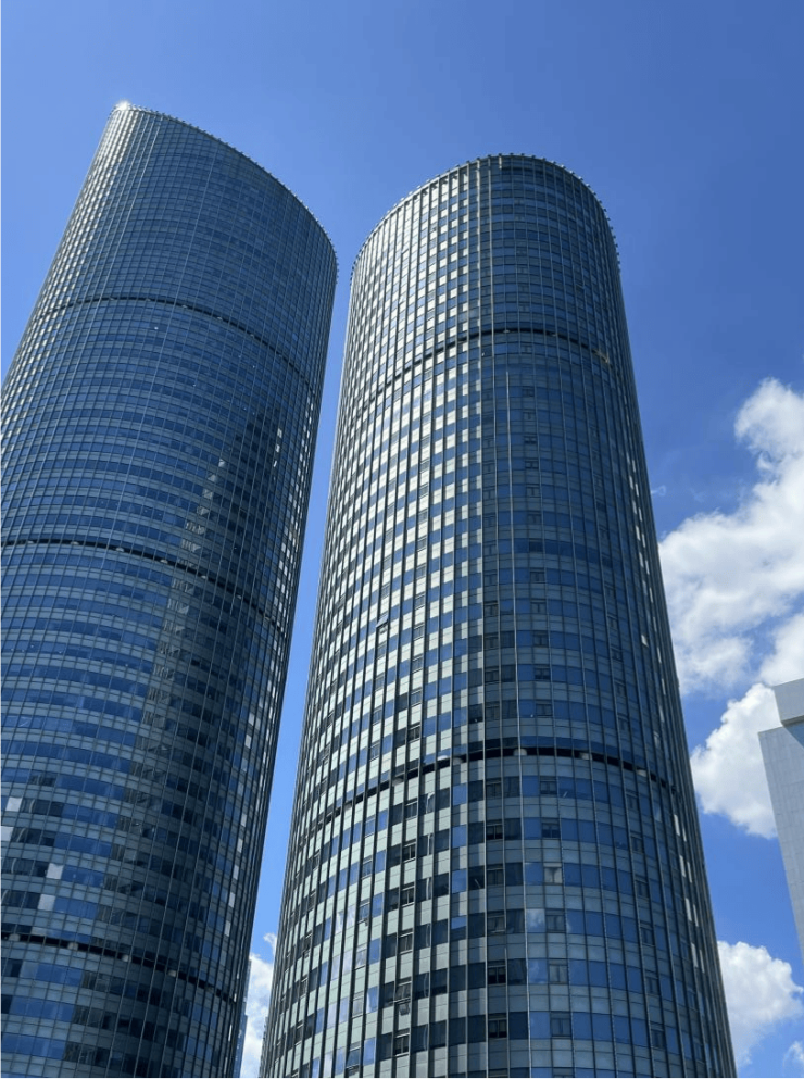 杭州SKYONE(财富金融中心)建筑外部两个楼的塔顶均有约39米高的轻钢结构造型,塔架最高点分别为188米和258米,形成互动的两个“口红楼”造型。