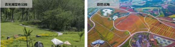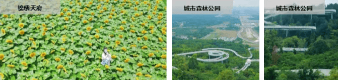 沿成洛大道可到青龙湖湿地公园(3 万亩)、锦绣天府(4.8 万亩,建设中)、蔚然花海(800 余亩)、龙泉山城市森林公园,周边 3km 内还有 8 个公园,最近仅 1.1km(数据来源:龙泉驿区规划和自然资源局 2024 年生态资源公示),饭后散步、周末带娃,在家门口就能亲近自然。