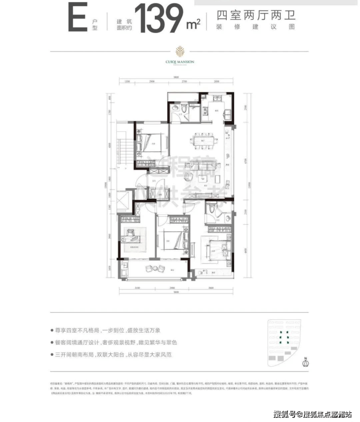 建面约139方是典型的边套户型。