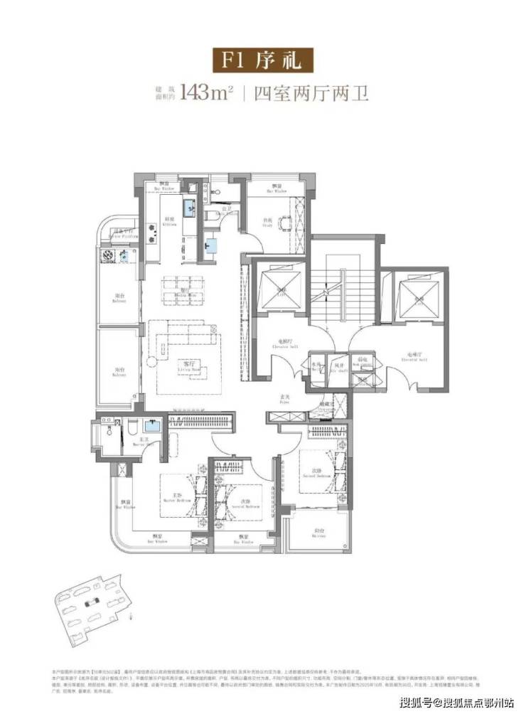 最关键的是,建面约143㎡的产品 全系两梯两户、类一梯一户 的设计,电梯出来有一个独立的电梯厅,可以作为业主生活的延伸。