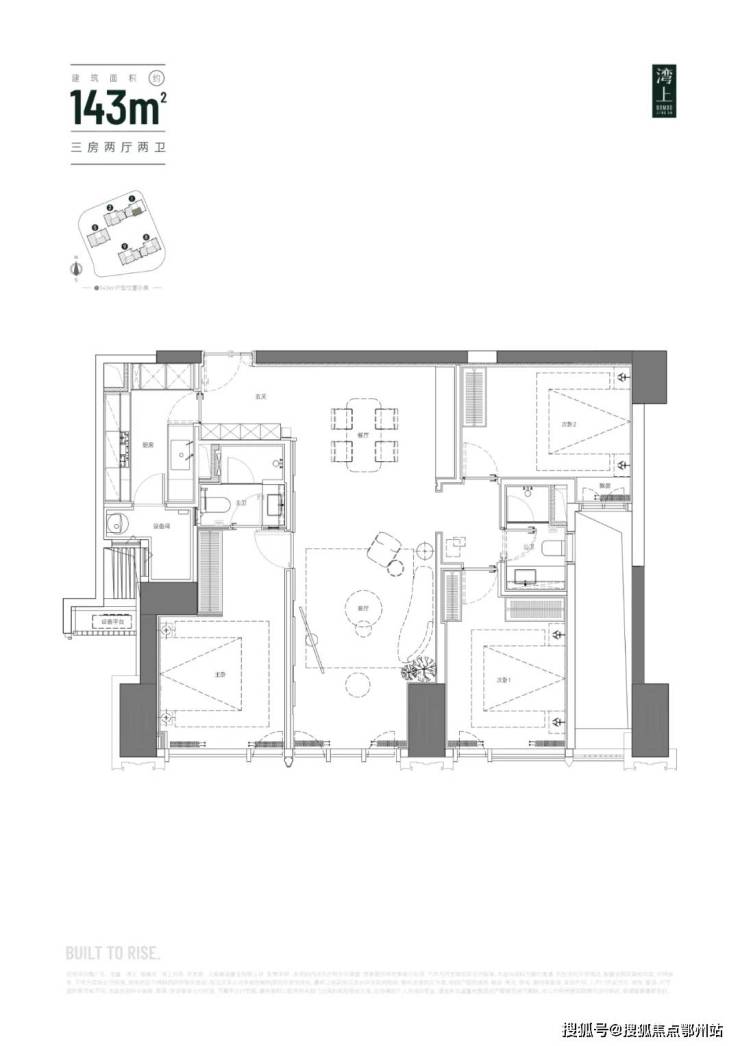 主推建面约 150 - 256㎡纯粹大平层,三梯三户,层高 3.3 米,空间开阔大气。