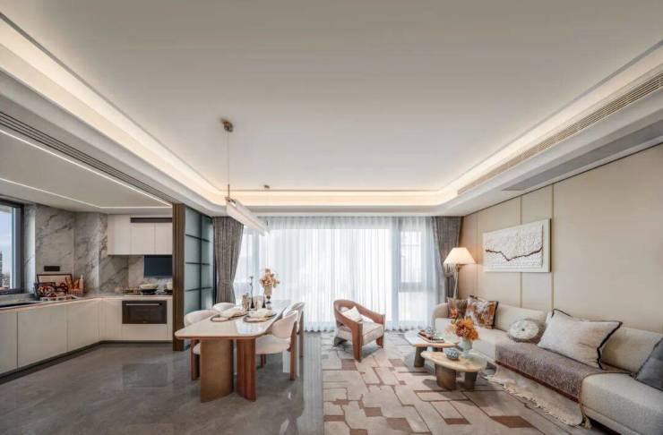 本次上新的光幕112样板间,以产品力持续迭代,通过空间流线、收纳与精装黑科技的全面升级,做到了约270°视野的通透与敞阔,带来宁波同面积段户型难得的类大平层居住体验。