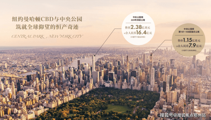 但纵观全球,也就只有位于纽约曼哈顿CBD、南向直面中央公园、上亿美元的顶级豪宅: 220 Central Park South(中央公园南220号)、 中央公园塔 (Central Park Tower) 两个项目可以匹配了。