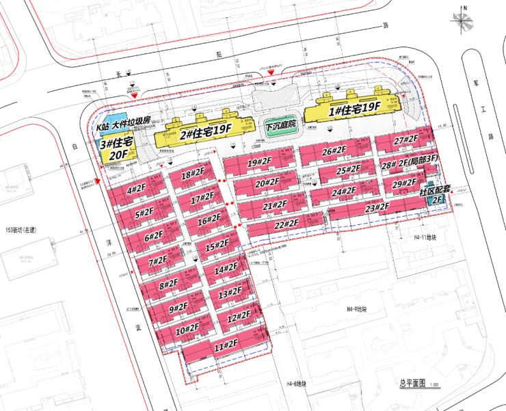项目建设内容主要为3栋19-20F的高层,两栋为商品房,一栋为保障房或公租房。另外还有26栋2F的风貌别墅及配套设施组成。小区入口处设计了一座下沉庭院,可以说是一个规模合适的低密墅质社区。